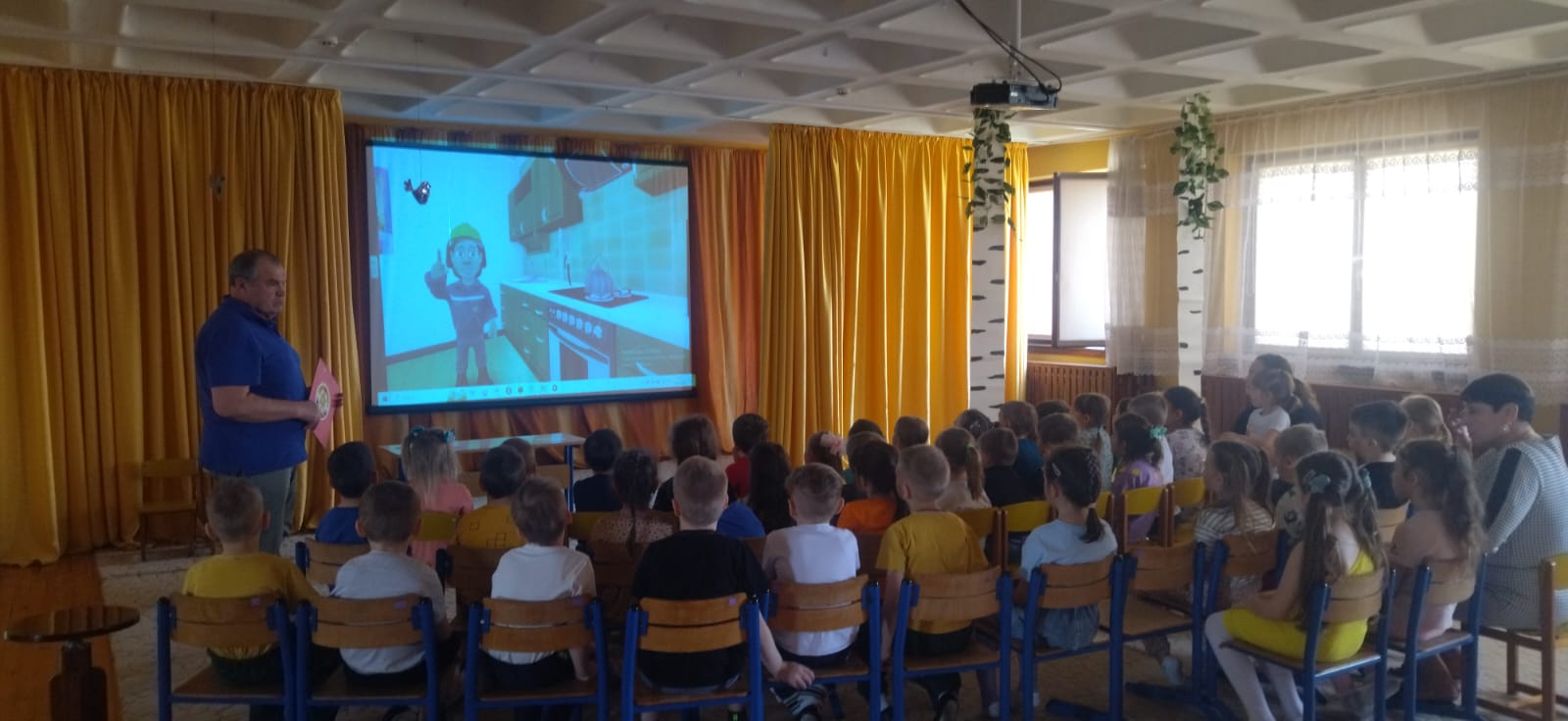26 марта текущего года с посетителями весенней смены (учащиеся начальных классов) оздоровительного лагеря дневного пребывания детей «ЛОТОС» при МБОУ ДО Егорлыкского ЦВР, инструктором по противопожарной профилактике ВДПО Егорлыкского района РО Мелешко В.Г. были проведены профилактические занятия по правилам пожарной безопасности.