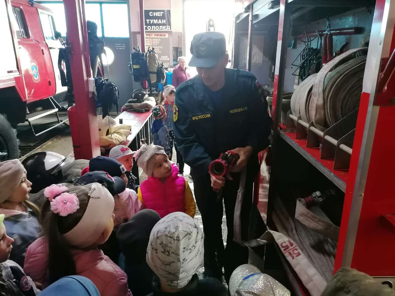 Вдохновившись услышанным и увиденным, мальчишки и девчонки стали примерять боёвки и каски, сидели внутри пожарной машины, очень уж им хотелось почувствовать себя в роли пожарного. В завершении экскурсии ребята поздравили пожарных с предстоящим праздником – Днём пожарной охраны, рассказали стихотворения и подарили совместную подделку, чем очень расстроили наших доблестных пожарных! ![]() ![]() ![]() ![]() ![]() ![]() ![]() Читать далее Обучение членов добровольных пожарных дружинОпубликовано: 26-04-2023 10:00
