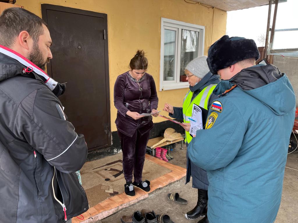 Инструктор ВДПО Егорлыкского района совместно с пожарными, спасателями, госпожнадзором, казаками посетили пункт временного размещения граждан, эвакуированных из Донецкой народной республики.