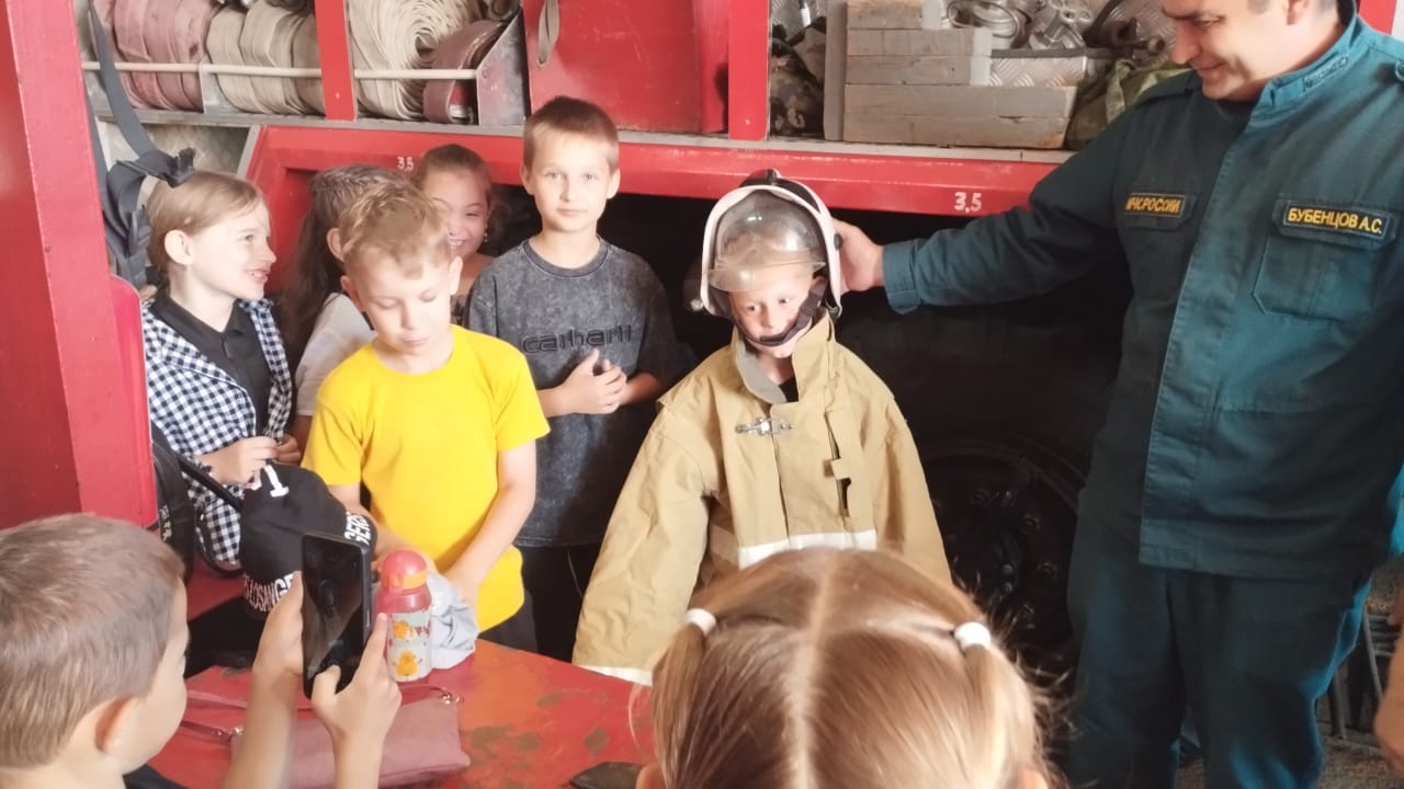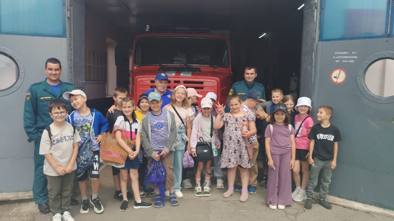 В рамках профилактической операции «Мое безопасное лето» 25 июня текущего года Егорлыкским отделением ВДПО РО была организована экскурсия учащихся лагеря дневного пребывания при МБОУ Е СОШ № 7 им.О.Казанского в 51 ПСЧ 7 ПСО ФПС ГУ МЧС России по РО.